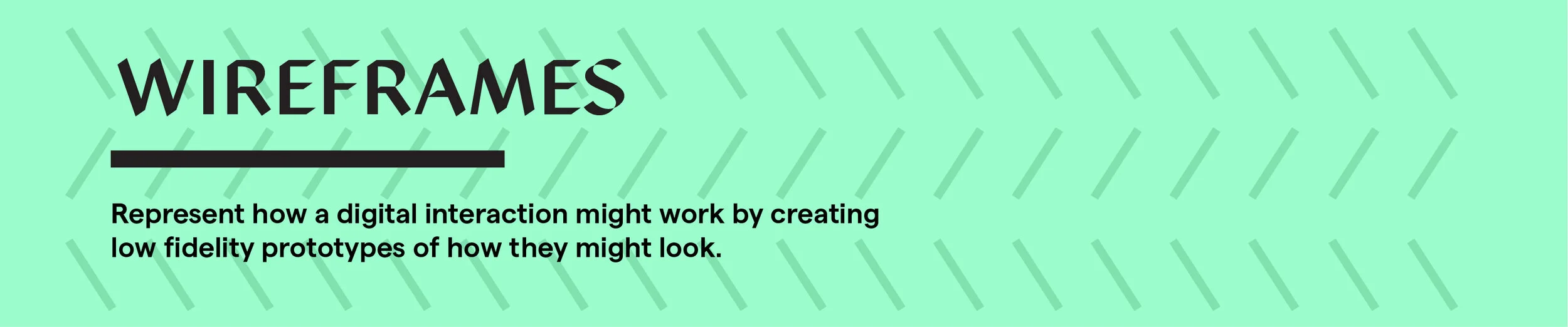 Wireframes help you quickly visualise any digital interface in your solution’s user journey. They can be quick and low fidelity to convey simple functionality or they can be detailed and accurate but either way they help you consider how a concept will work and offer a way to communicate and test your concept with other people.